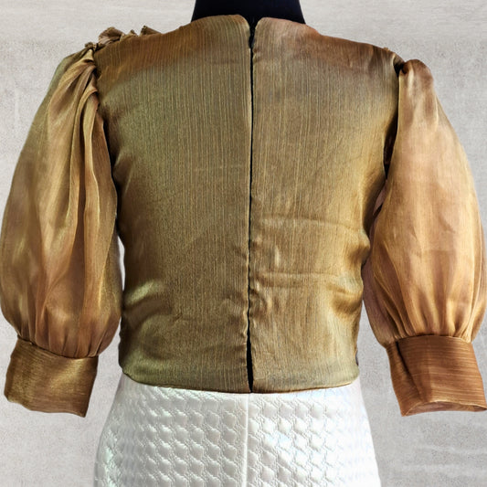 (RC-W-663) Triple Layer Frill Neck Puff Sleeves Organza Party Dress with Trendy Waistband