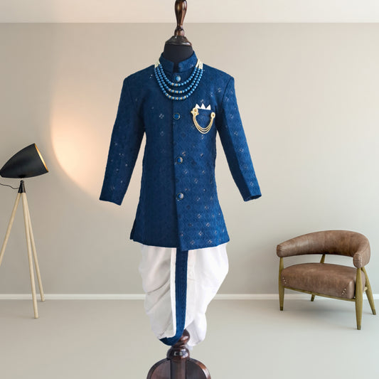 (OJ-KK2214) Peacock Blue Indo-western chikankari Kurta and Dhoti set with accessories