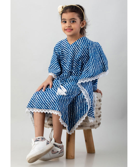 (JC-KD-24) Blue and White Leheriya pattern Kaftan Dress