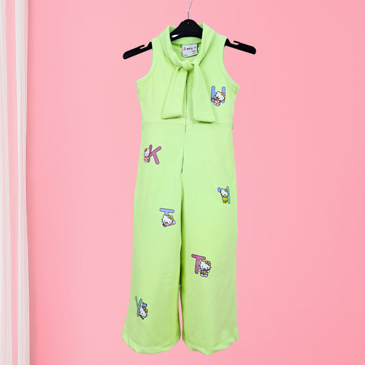 (RC-942) Tie Knot Neck Full Length Sea Green Jumpsuit